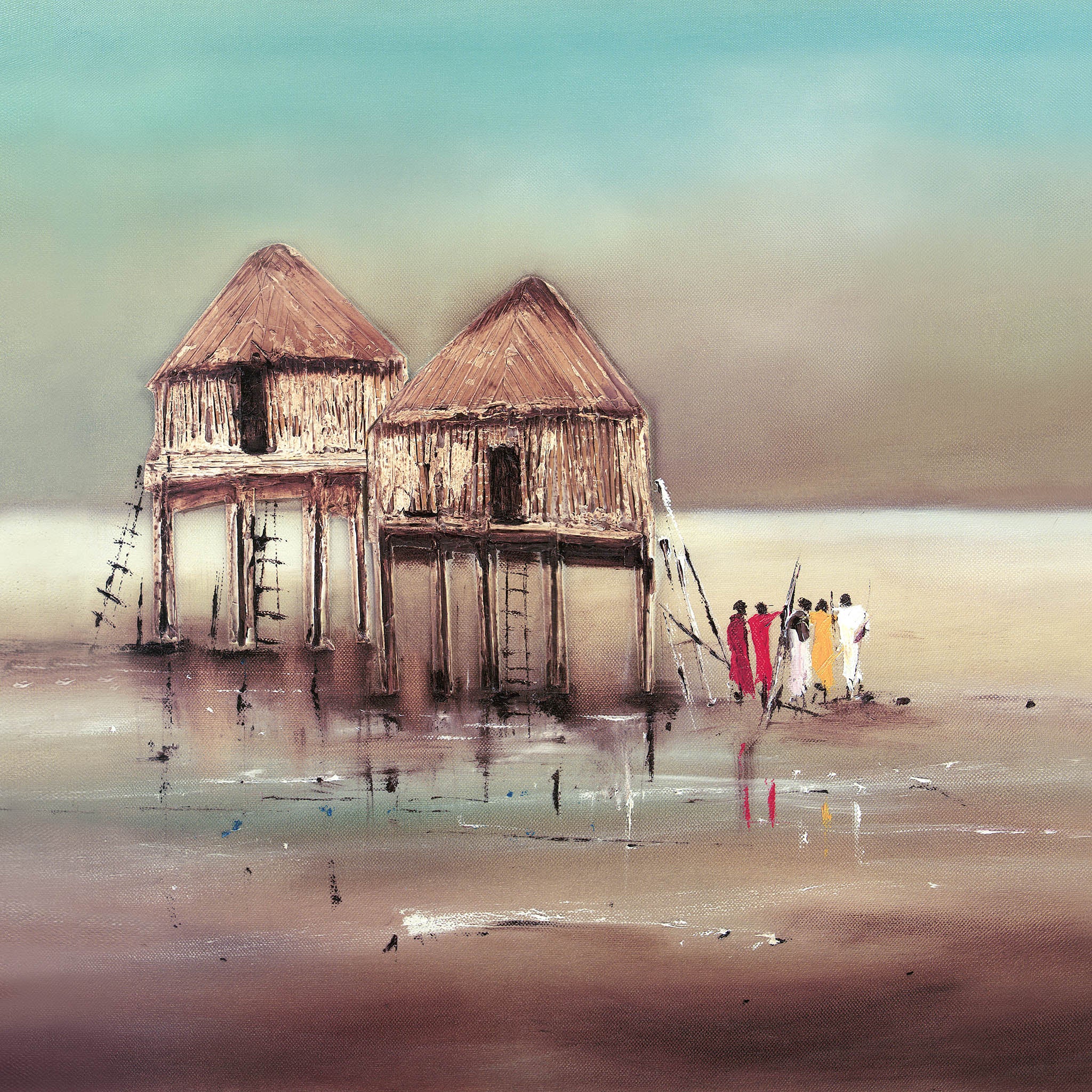 A tranquil depiction of a stilted village over calm waters, Village on Stilts - 1 captures the essence of coastal living. With soft hues and delicate brushstrokes, this artwork evokes a sense of peace, simplicity, and harmony with nature—perfect for bringing a coastal or bohemian touch to your space.