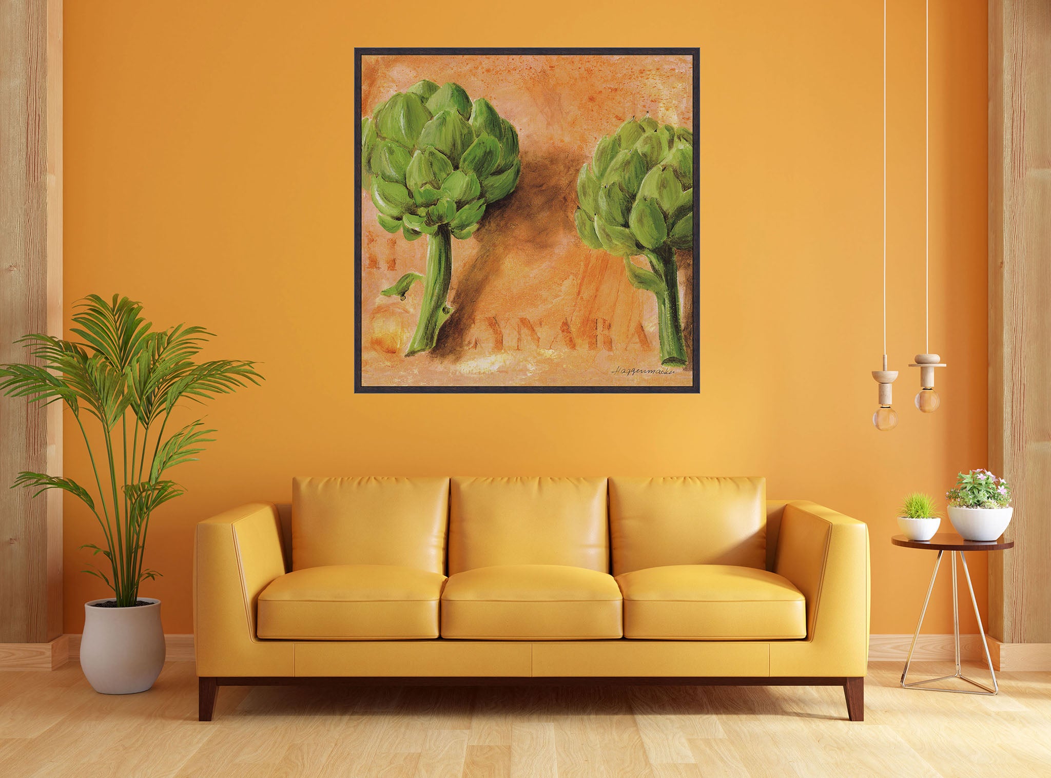 A rich and earthy composition, Earthen Greens brings a natural charm to your space with its warm, textured background and lush green artichokes. The organic color palette create a rustic yet elegant aesthetic, perfect for kitchens, dining areas, or nature-inspired interiors.